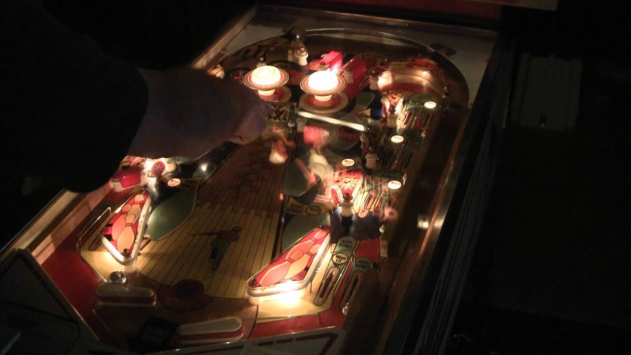 This is the 2-player version of “300”. Your primary objective on this bowling-themed game is to build bonus with shots around the playfield, including the right-hand saucer, and collect it in the left-hand saucer. This game has a rare “ball count” bonus display feature, inside the backglass. Your bonus is one thousand per ball shown in the window. You want to get the bonus up close to its maximum of 10K, collect it, and repeat that process. The collect part is important since you can’t advance the bonus beyond 10K - bonus advance shots don’t add any bonus at that point. If your bonus is at 10K, collecting it is your absolute priority. Primary feature: the two saucers at the upper left. The left saucer collects and resets your bonus, plus giving you 1000 points. The right saucer randomly adds 1K, 2K or 3K to your bonus. Bonus is built in many ways. The center spinner advances bonus 1K per five spins. The return lanes, outlanes, upper left lane and standup targets all advance it 1K when lit. The right side of the game is a set of eight lanes in four side-by-side pairs. These are lit crosswise, i.e. either (top-left) + (second-right) + (third-left) + (bottom-right) or vice versa. If you shoot the ball into these, you’ll want to keep it in the lit lanes to add bonus, so nudge accordingly. The bottom right lane drops to a gap between the right return lane and a rubbered post and will drain if not nudged properly, unless the gate is open. The upper left lane, below the saucers, opens that gate at the right outlane; you want that gate open whenever possible. The lane can’t be reliably shot directly, but you can nudge the ball in when it’s bouncing off the left bumper. If the ball is in the vicinity, try to do so! Right flipper: shoot for the saucers. Left flipper: shoot the spinner to advance bonus and get the ball rattling in the bumpers where it might bounce into a saucer or over to the left to open the gate. You can also consider shooting for the eight right side lanes, but I suggest doing so only when the crosswise sequence has the top right lane lit. The ball usually goes in there when you shoot it up that way, so you’ll likely get at least one advance, up to four if the ball falls through the sequence of lanes optimally. This sequence has the right return lane lit, too, which is where you want the ball to go if it falls through all four levels of lanes rather than bouncing out into the center of the playfield. Ball Control: do NOT hold the right flipper up to roll the ball up to a cradle: it will often go up and out the gap at the right side of the wire form. Live catches and drop catches are fine but use caution so you don’t accidentally do the roll-out.