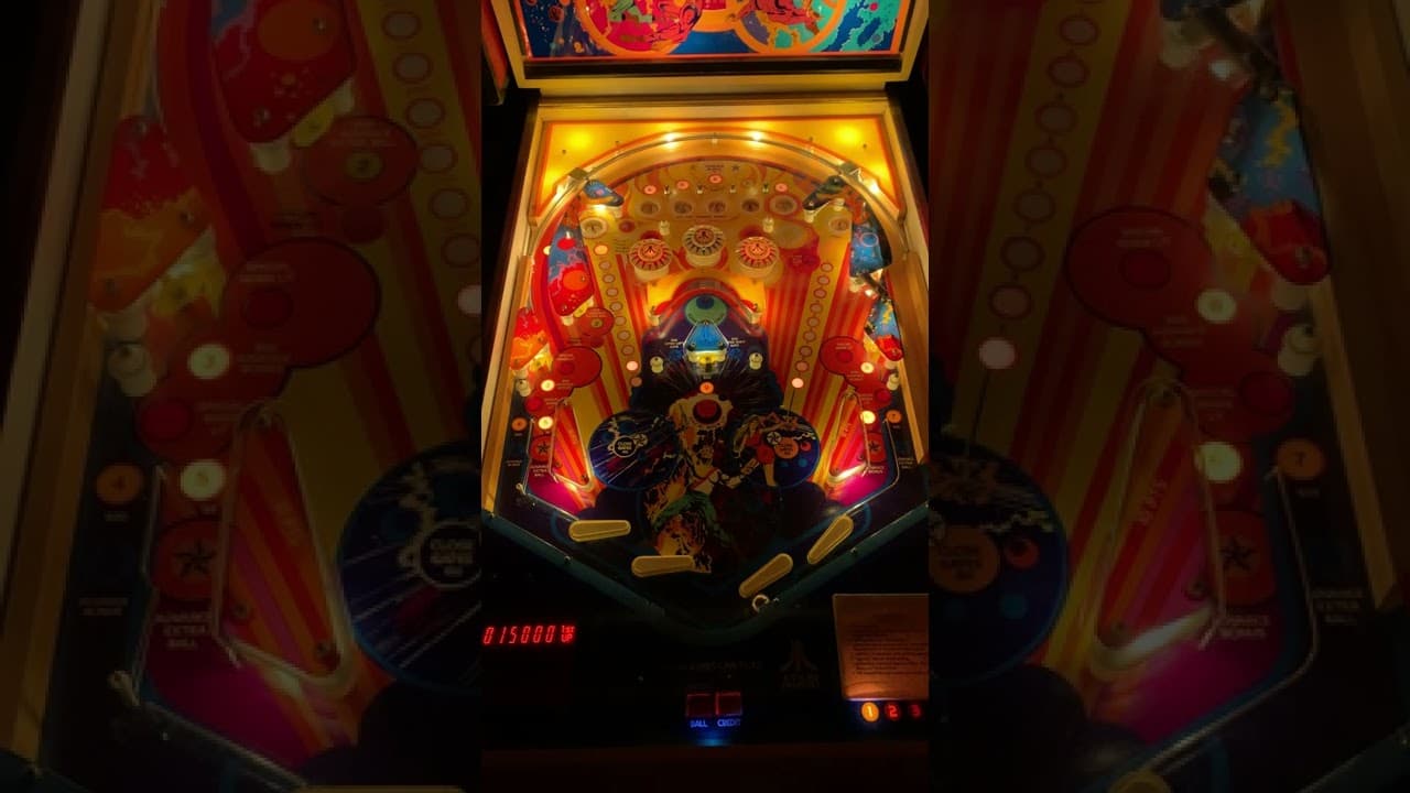 "The Atarians" pinball machine, released by Atari in November 1976, was the company's first foray into pinball manufacturing. This widebody, solid-state machine featured several innovative designs, including the use of inductive sensors under the playfield rather than traditional rollover switches, offering a smoother, more reliable detection of ball movement. Designed by Bob Jonesi, with artwork by George Opperman, the game includes four flippers, three pop bumpers, and seven kick-out holes.