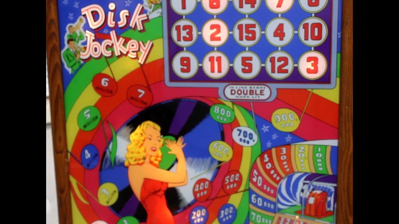 The "Disk Jockey" pinball machine, released by Williams Manufacturing Company in November 1952, is a single-player, electro-mechanical game designed by Harry Williams, with artwork by George Molentin.