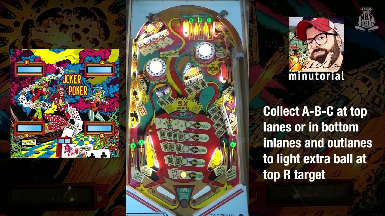 "Joker Poker," released by Gottlieb in June 1978, is a classic pinball machine designed by Ed Krynski with artwork by Gordon Morison. It features a card game theme and is available in both solid-state and electro-mechanical versions.