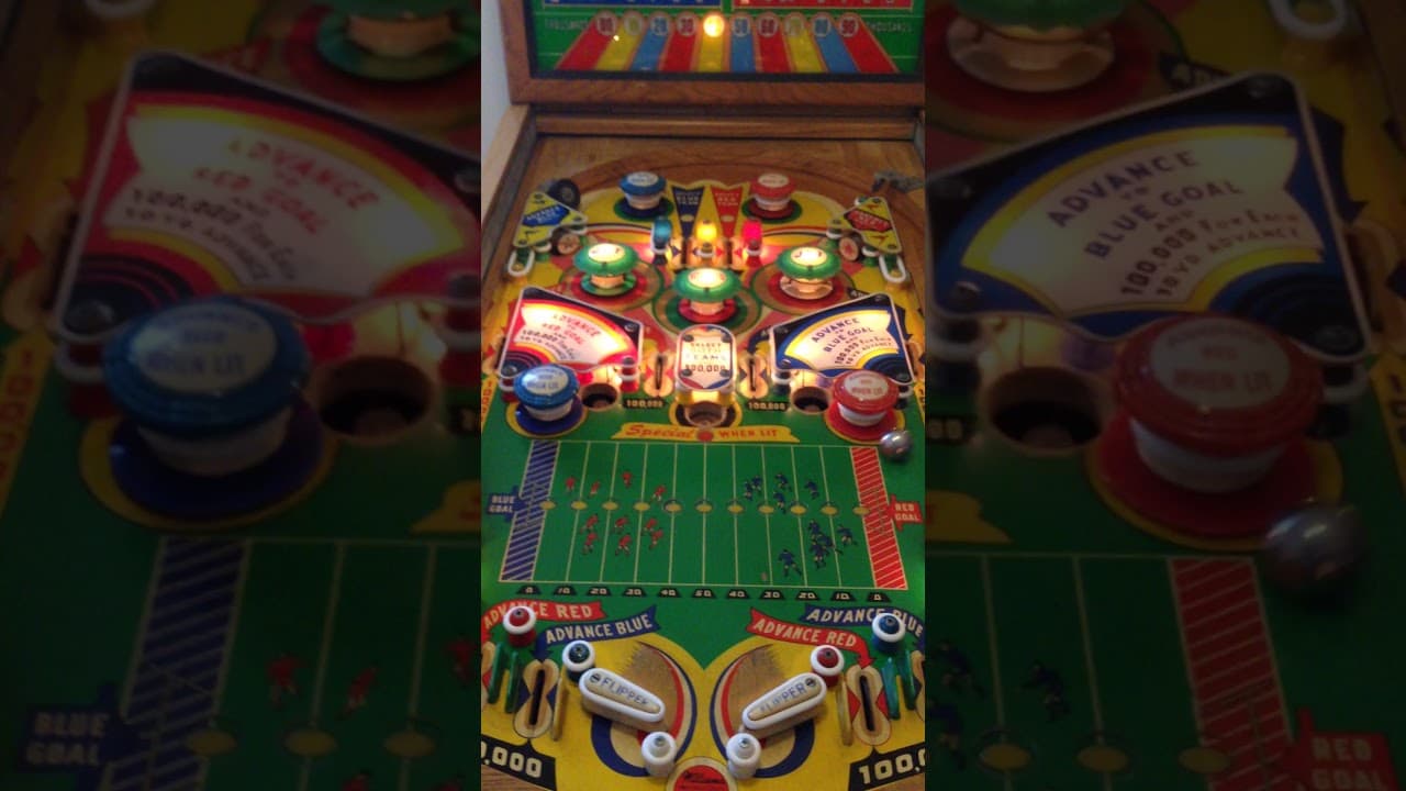 The "Kick-Off" pinball machine, released by Williams Manufacturing Company on March 20, 1958, is a single-player electro-mechanical game designed by Harry Williams, with artwork by George Molentin.