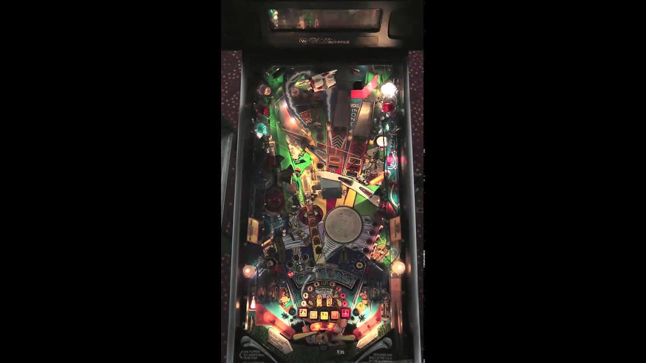 The "No Good Gofers" pinball machine, released by Williams in December 1997, is the final design by Pat Lawlor for the company. The game features a humorous golfing theme centered around two mischievous gophers, Buzz and Bud, who disrupt players' attempts to complete the course. Key gameplay elements include a unique "slam ramp" that can launch the ball for a "hole-in-one" shot, a spinning disc, multiple ramps, and a multi-ball mode. The machine also boasts vibrant artwork by John Youssi and engaging sound effects and music by Vince Pontarelli.