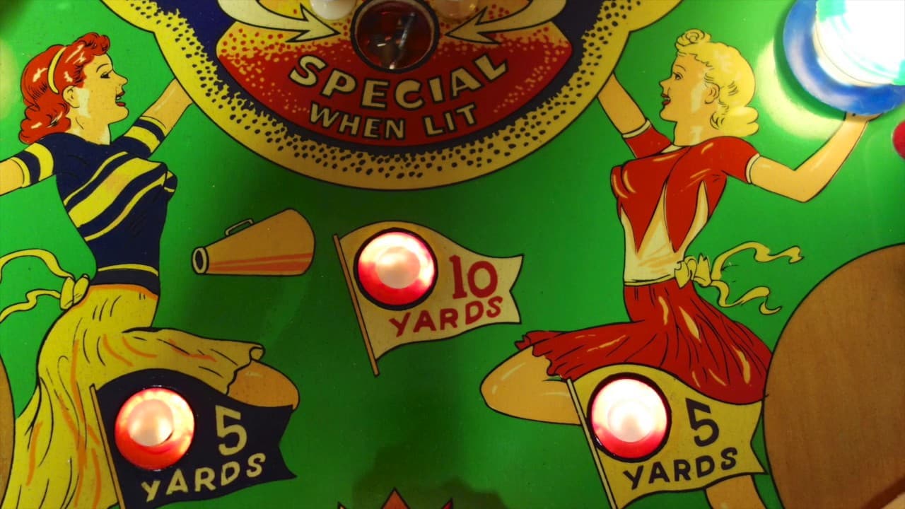 The "Rose-Bowl" pinball machine, released by D. Gottlieb & Co. in October 1951, is a single-player, electro-mechanical game designed by Wayne Neyens, featuring artwork by Roy Parker.