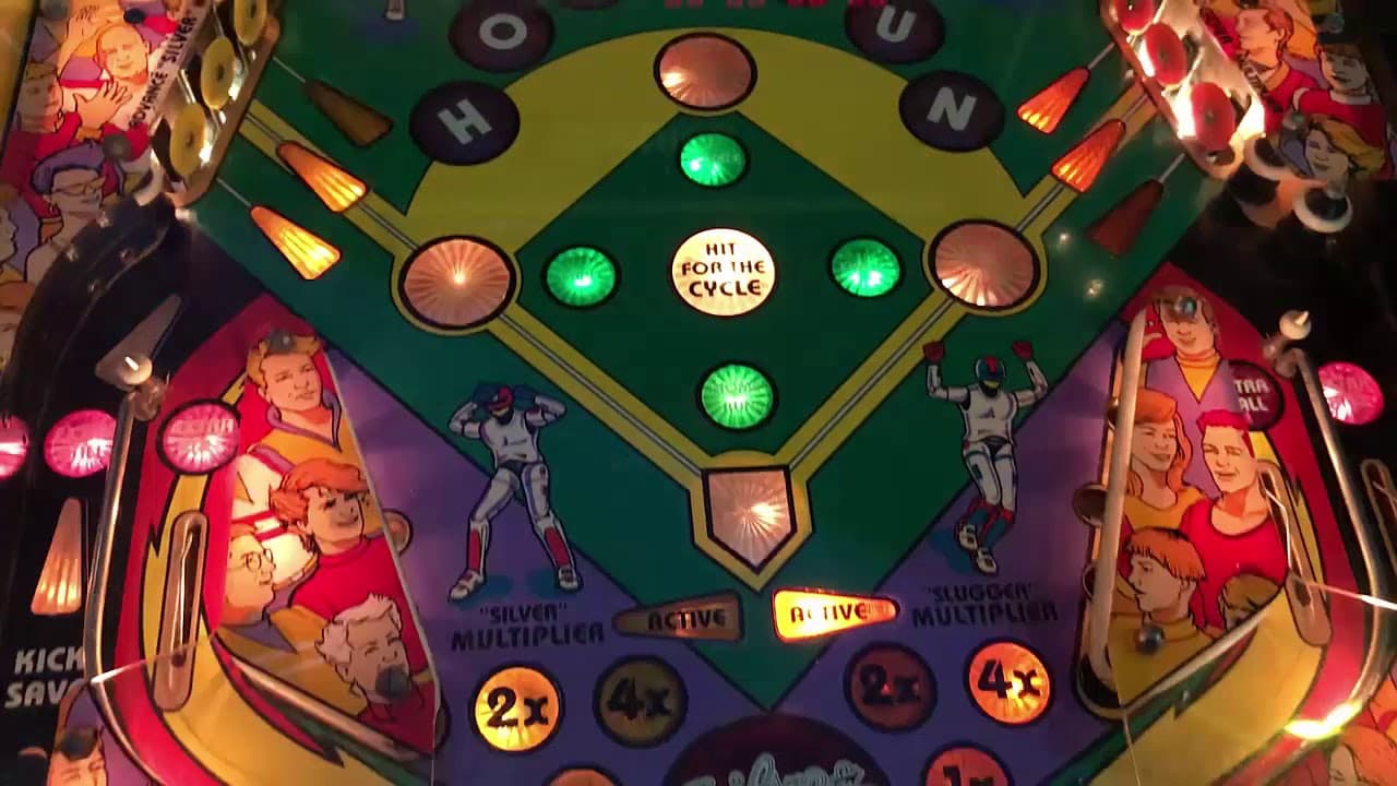 "Silver Slugger" is a 1990 pinball machine by Gottlieb, designed by John Trudeau with a baseball theme. It features two flippers, no ramps, and a three-ball multiball mode, focusing on straightforward but engaging gameplay. The machine uses the Gottlieb System 3 platform and includes alphanumeric displays.