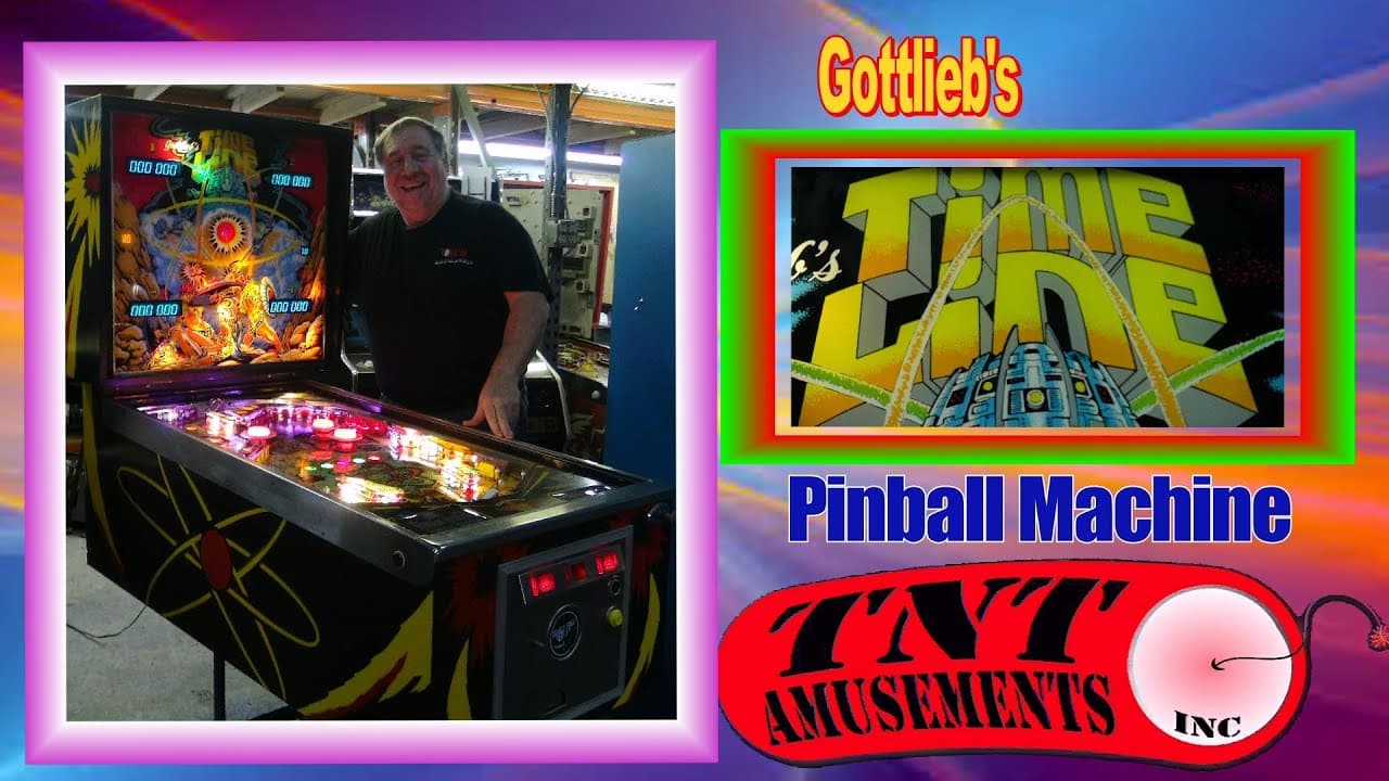 "Time Line" is a pinball machine released by D. Gottlieb & Co. in December 1980, featuring a sci-fi and time-travel theme. It has a wide body cabinet with four flippers, no ramps, and does not include a multiball mode. Designed by Allen Edwall with artwork by Gerry Simkus, it is part of the Gottlieb System 80 series with 3,167 units produced.