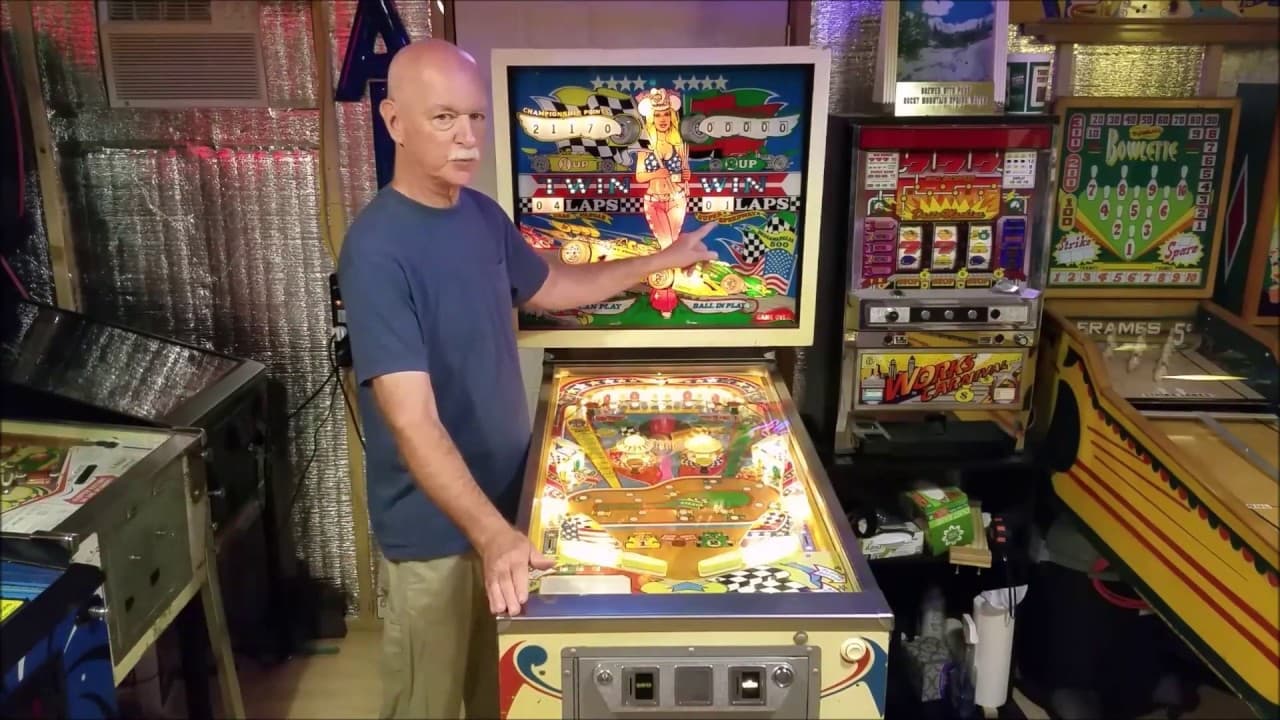 "Twin Win," released by Bally in 1974, is an electro-mechanical pinball machine designed by Jim Patla with artwork by Dave Christensen. The game is themed around auto racing, featuring a unique playfield layout with a racetrack and light indicators in the middle. It includes 4 flippers, 2 pop bumpers, 4 mushroom bumpers, 14 standup targets, and a spinning disc that adds an interesting element to the gameplay by kicking the ball into play from between the flippers to the spinning disc