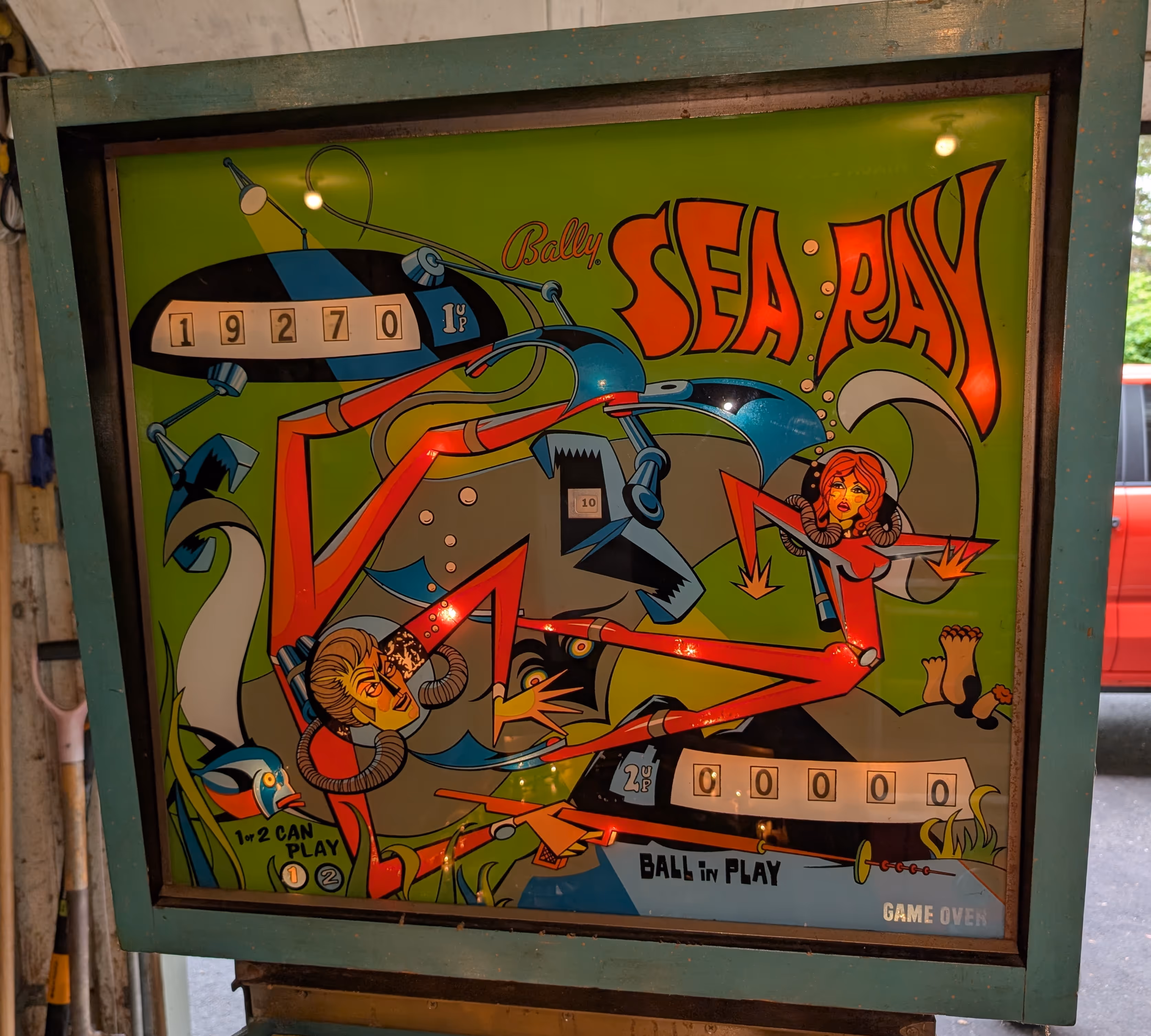 Mariner and Sea Ray, both released by Bally in 1971, are closely related pinball machines that share the same gameplay mechanics but differ in their player capacity. Mariner is the four-player version, while Sea Ray supports two players. Designed by Ted Zale with artwork by Christian Marche, both machines feature a water sports and spear-fishing theme.
