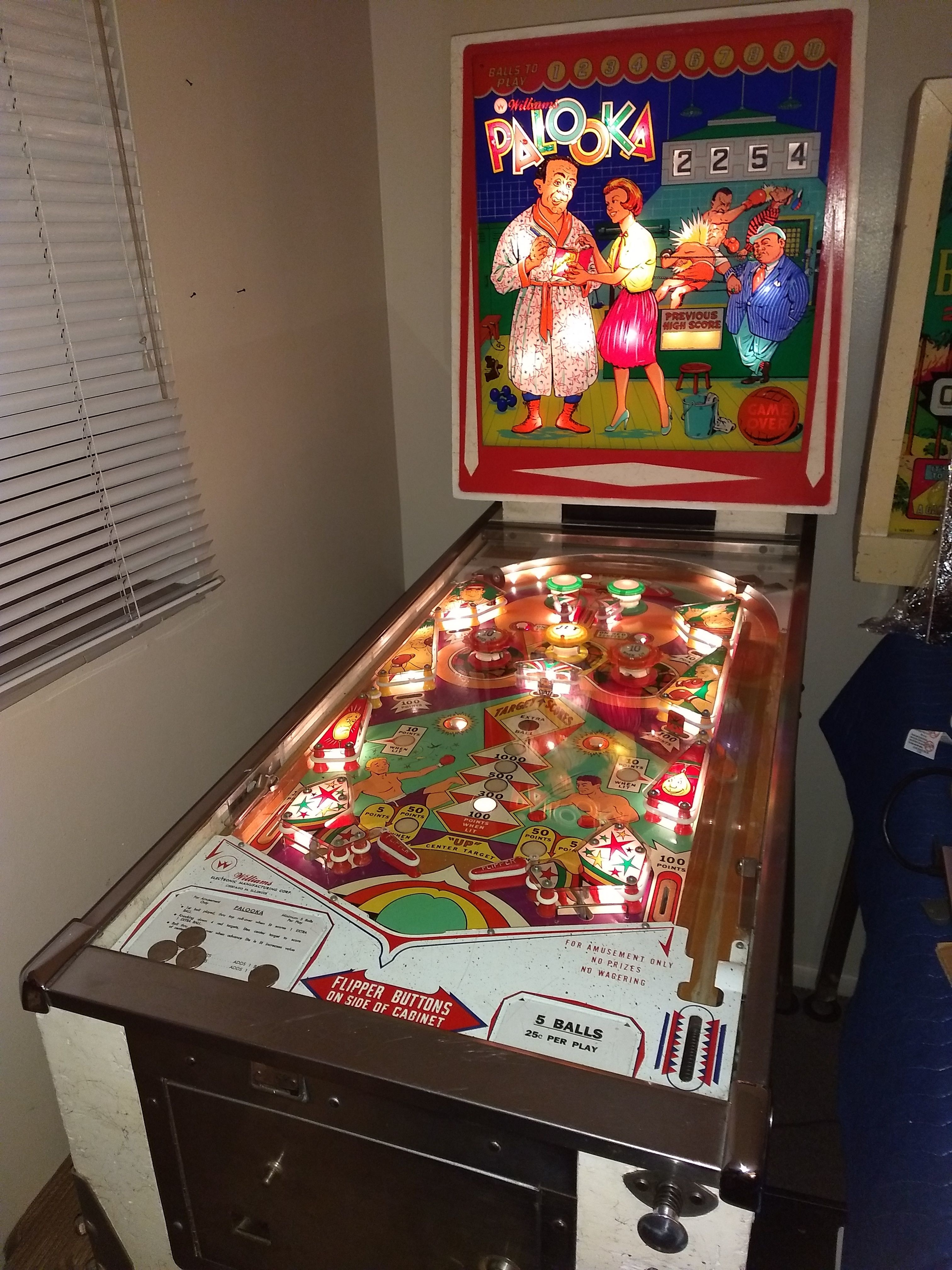 The Palooka pinball machine, released by Williams Electronic Games in April 1964, is themed around boxing and was designed by Steve Kordek, with artwork by Art Stenholm. It was inspired by the popular Joe Palooka comic strip, which followed the adventures of a heavyweight boxing champion.