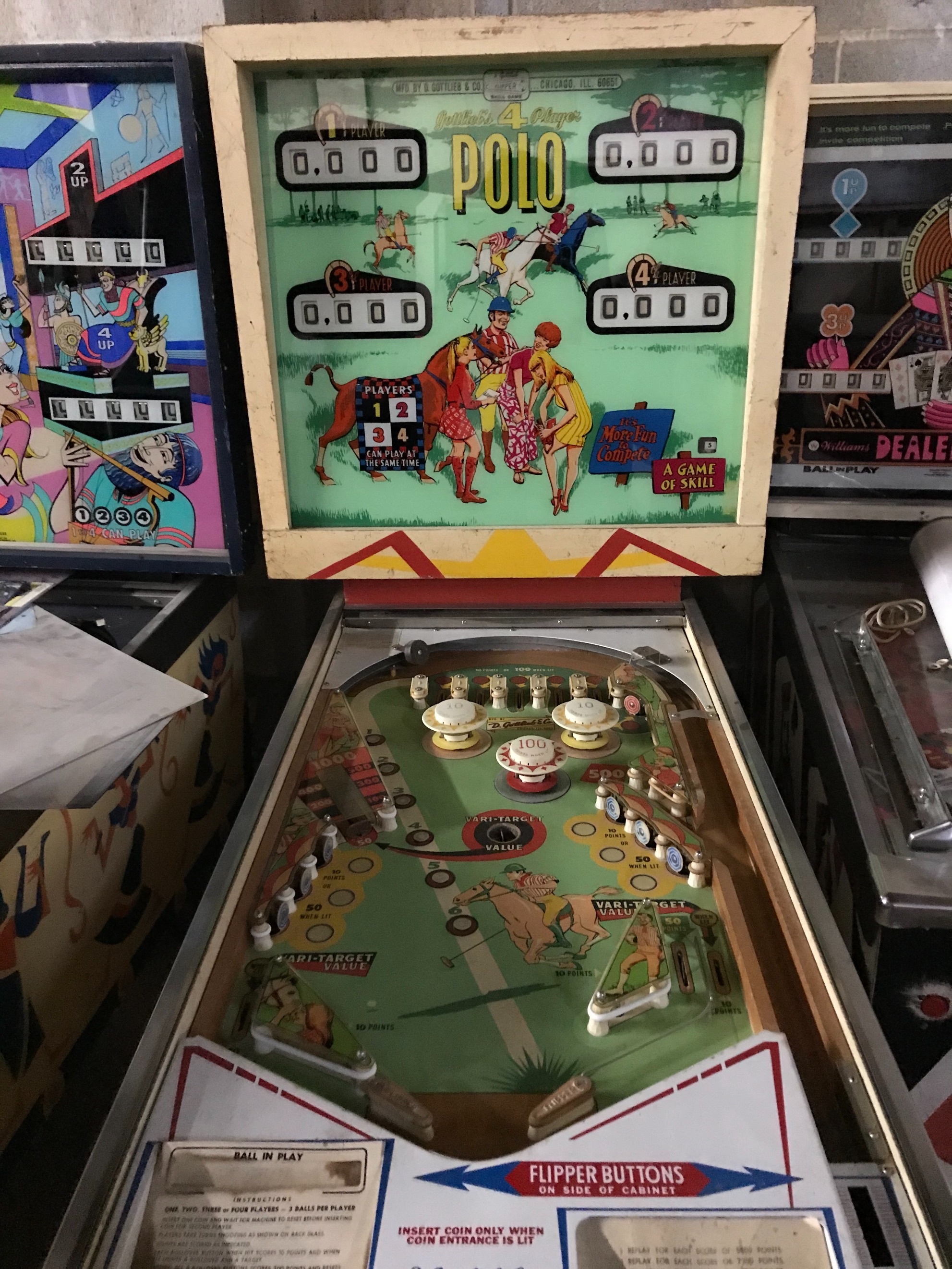 Polo and Mini Cycle are pinball machines manufactured by D. Gottlieb & Co. in 1970. Both games share the same playfield design, with Polo being the four-player version and Mini Cycle the two-player variant. Designed by Ed Krynski with artwork by Art Stenholm, these machines feature two flippers, three pop bumpers, a vari-target, a kick-out hole, and a free ball return lane.