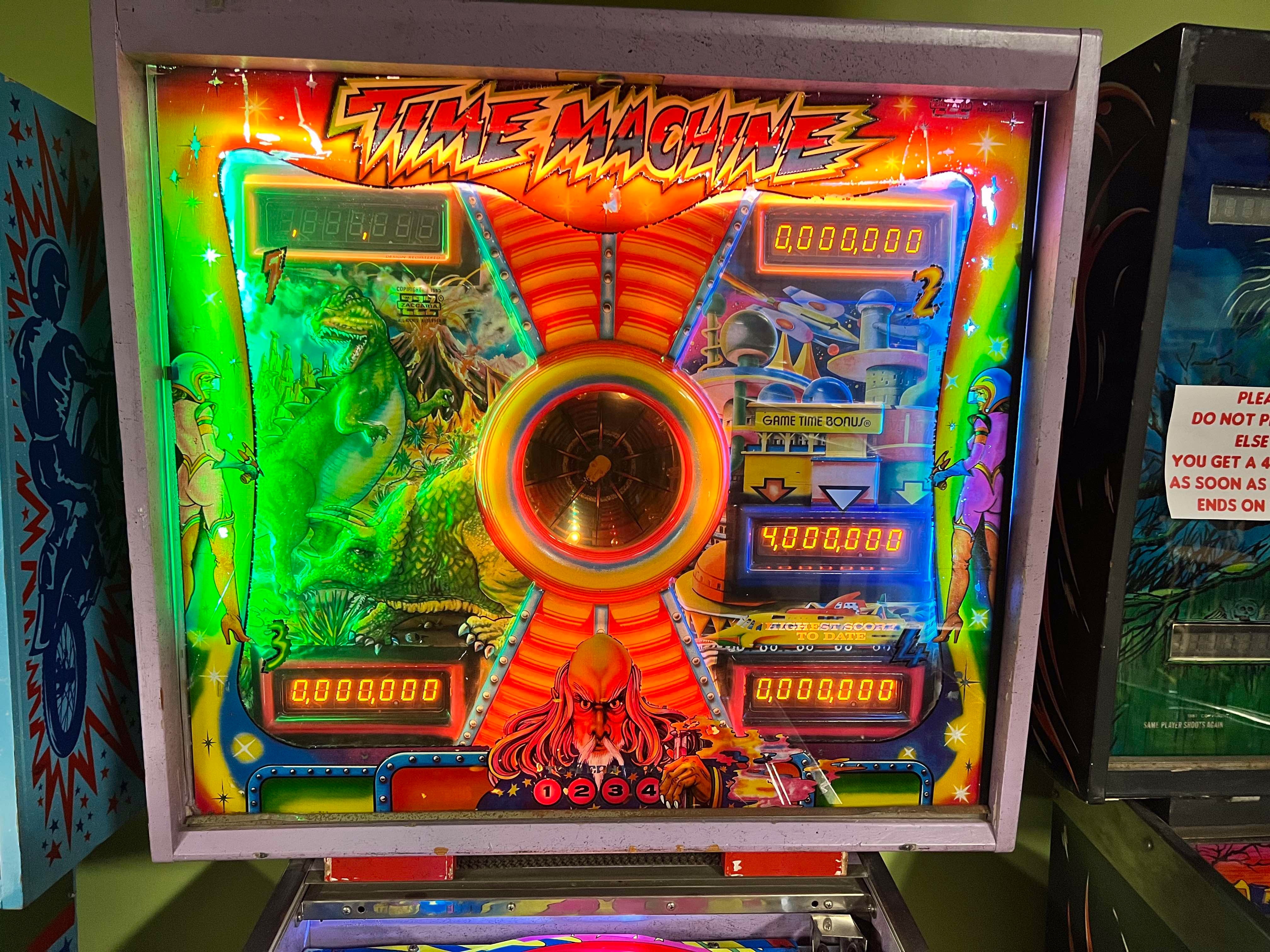 The Time Machine pinball machine, released by Zaccaria in 1983, features an innovative time travel theme. Notably, it includes four flippers and a section of the playfield that raises and lowers when the ball enters the "time hole," creating dynamic gameplay.