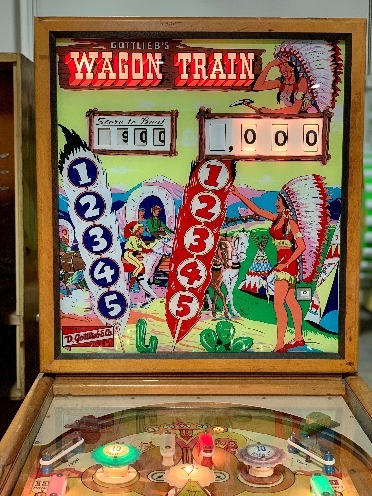 The Wagon Train pinball machine, released by D. Gottlieb & Co. in April 1960, is an electro-mechanical, single-player game designed by Wayne Neyens with artwork by Roy Parker. It features a Western theme inspired by the popular TV show Wagon Train, and its backglass artwork depicts actor Ward Bond, who starred in the series.