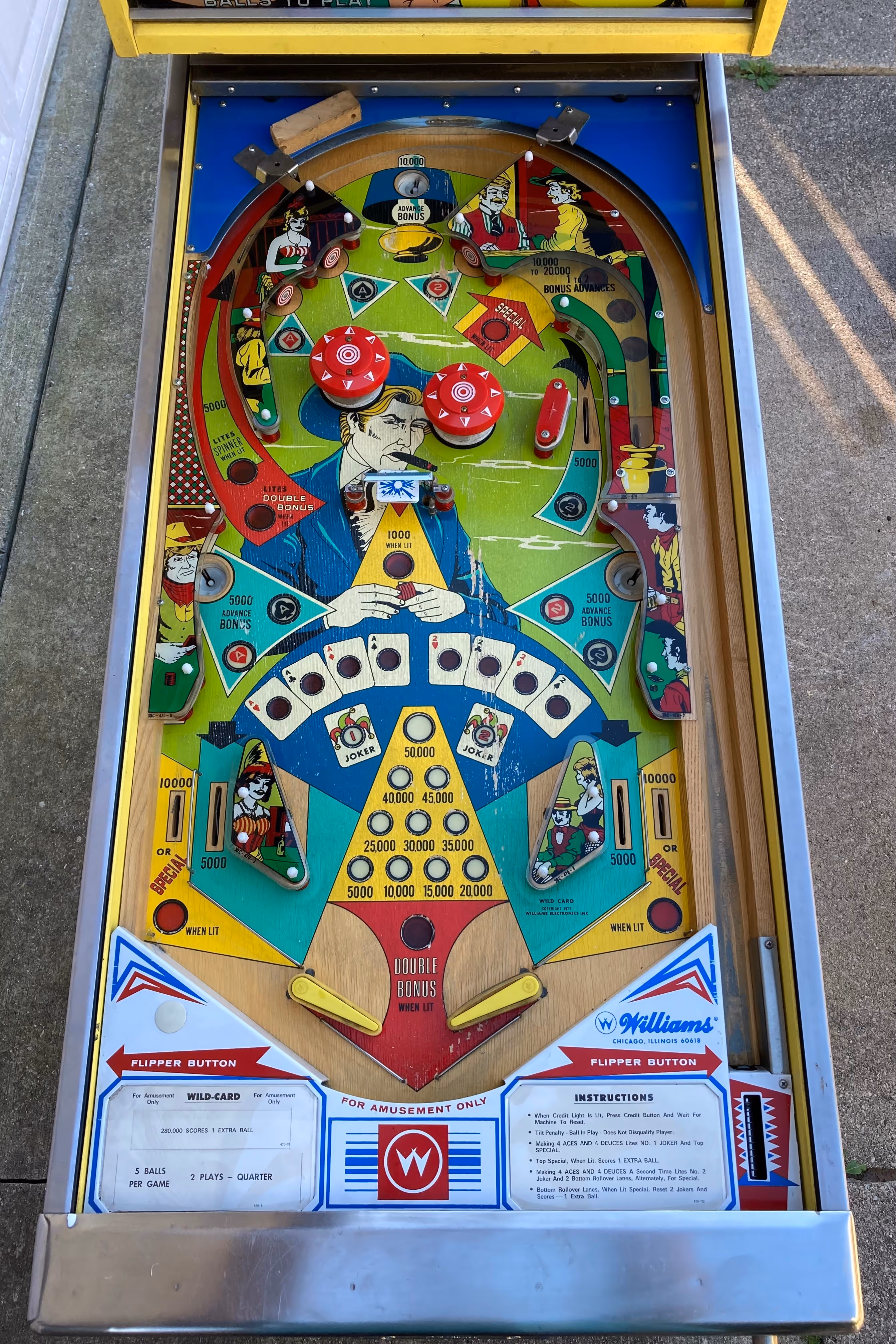 Wild Card, released by Williams Electronic Games in 1977, is an electro-mechanical pinball machine designed by Steve Kordek with artwork by Christian Marche.