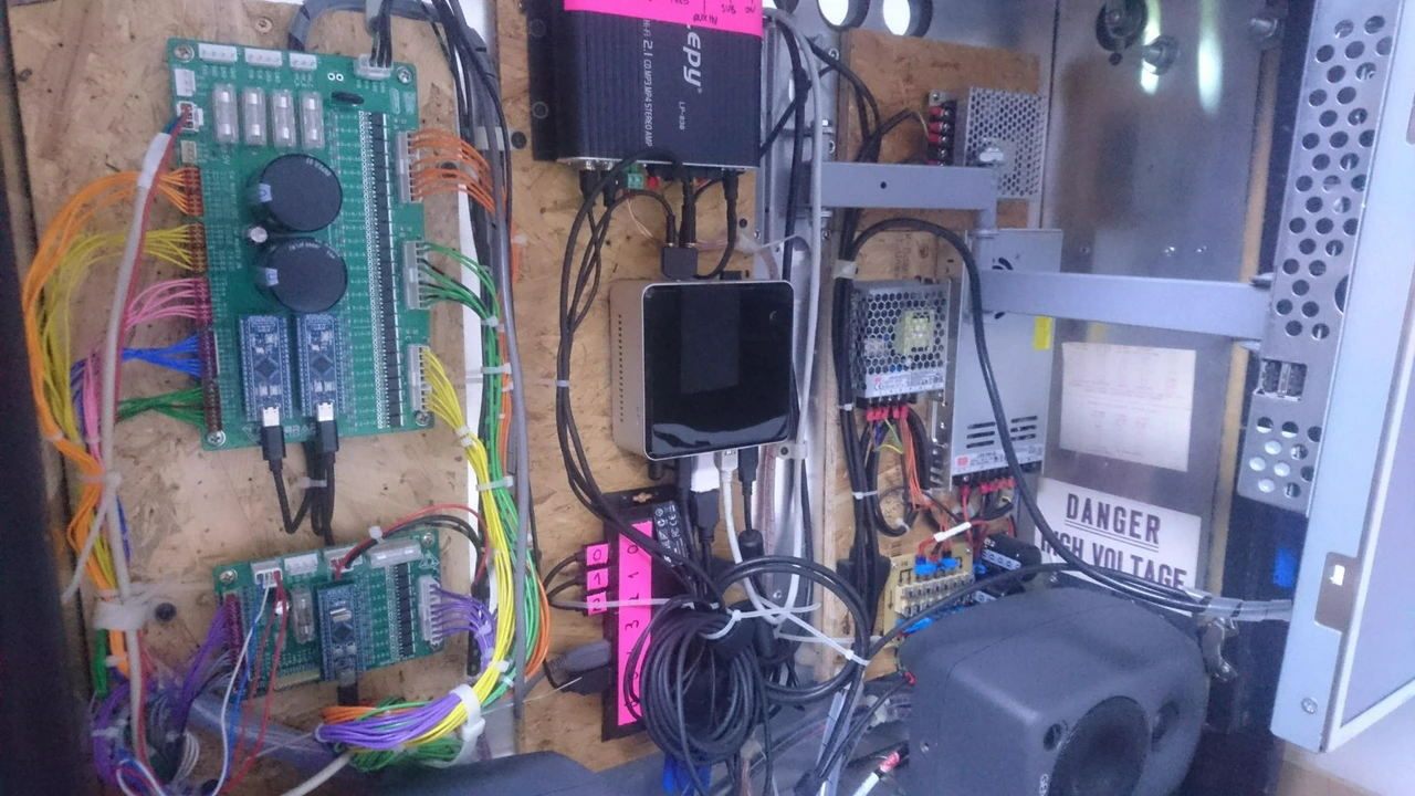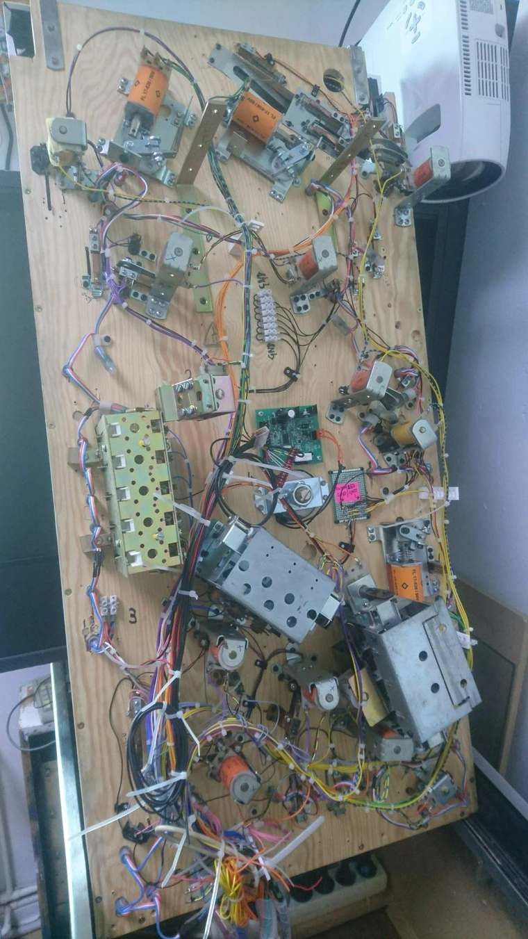 In 2017, the two collaborated on an unnamed prototype project, which used a 1976 Williams Dealer’s Choice, where the friends had hooked up a couple of relays and an Arduino to get coil signals from the game. Then they connected it to a program called Pure Data Sketch, which triggered Freeliner animations displayed through a projector hung on top of the game.