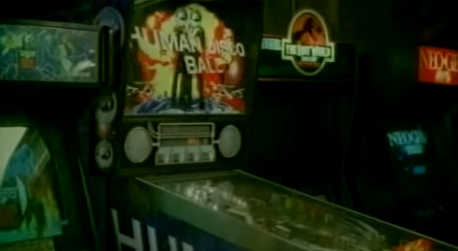Gotta love a music video that features the The Lost World: Jurassic Park arcade game, plus a re-skinned Bride of Pinbot machine.