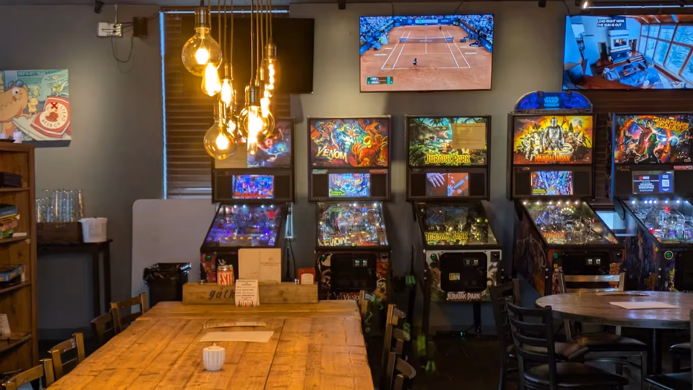 Grizzlybird Brewing Company has built out a dedicated pinball room alongside its taproom, creating one of the larger brewery pin collections in central Ohio. The Westerville location opened in 2019 and added the expanded game room in 2025 with hardwood floors and upgraded lighting.
