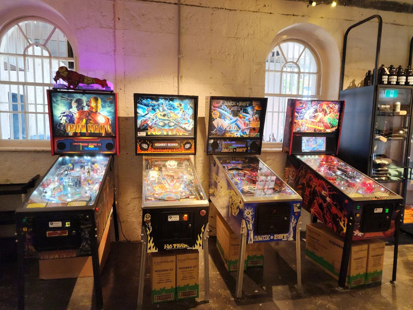 The Saloon Barcade combines craft beer, cocktails, and pinball in a bayside suburb south of the city. The venue hosts monthly head-to-head matchplay tournaments for competitive players. Food options include pizza, burgers, and pasta, with pool tables and arcade games alongside the pinball machines.