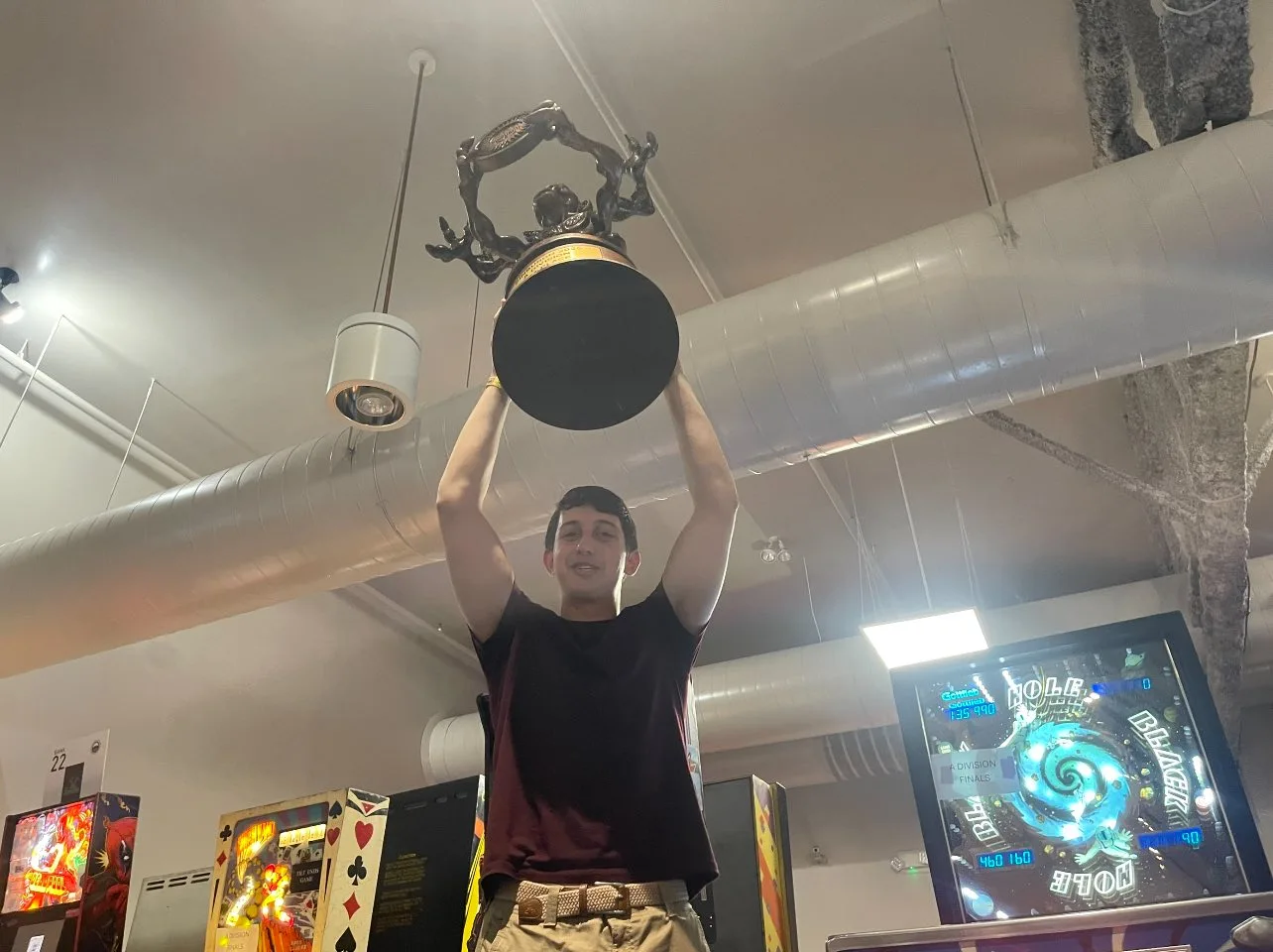 Jason got off to a strong start with an 880 million point game on Deadpool (Stern, 2018), followed by another win on High Hand (Gottlieb, 1973), while Zmac picked up second place on both. In their third game, Hoops (Gottlieb, 1991), Zmac had a huge ball 2 pop-off, taking the lead and picking up a win of his own. With Jason at 8 total points and Zmac at 7, the $6,000 championship came down to the last game, Black Hole (Gottlieb, 1981), while Arvid and David fought for third place.