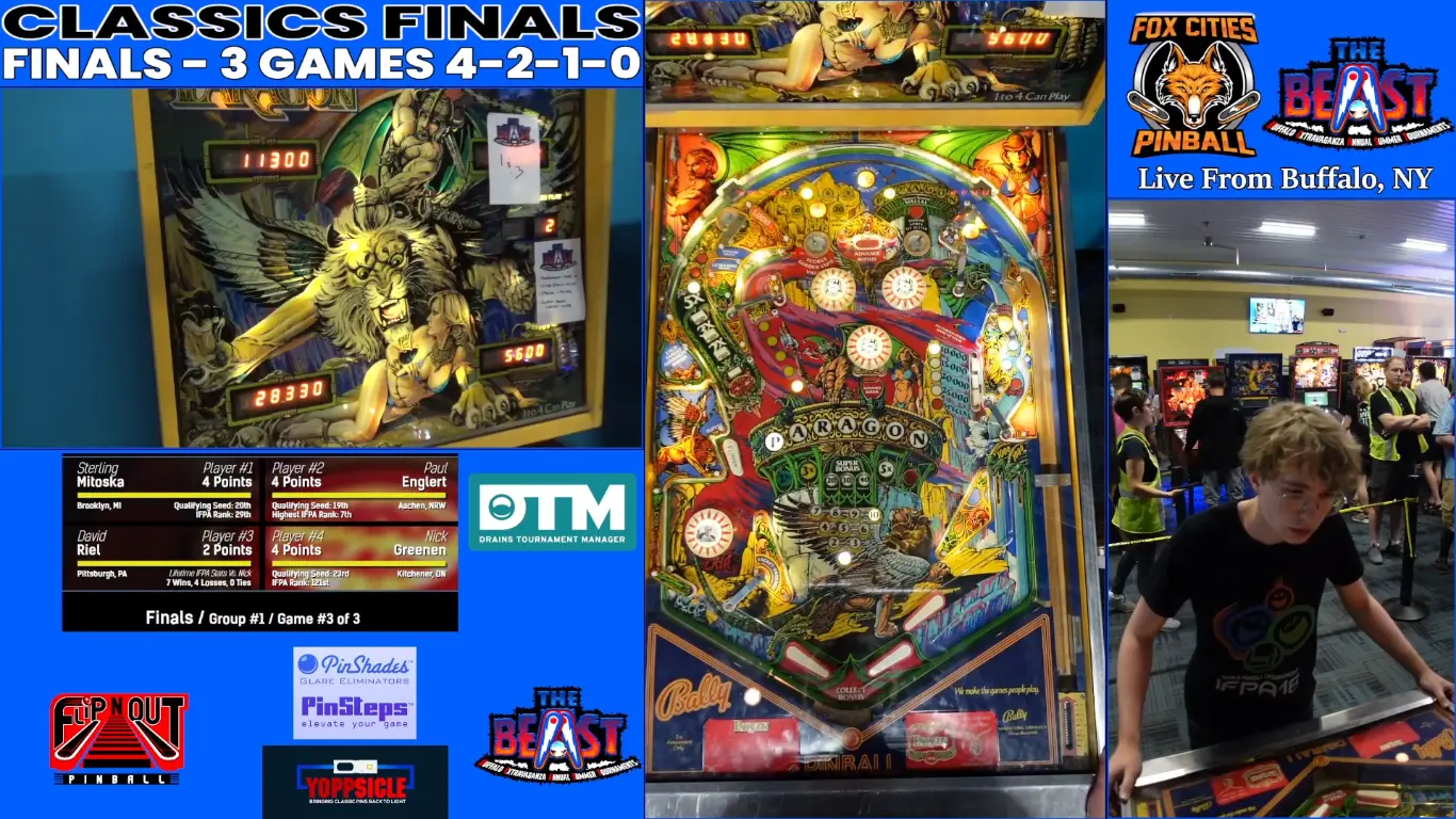 New to the Stern Pro Circuit this year is The Buffalo Extravaganza Annual Summer Tournament, or BEAST for short. Held at Pocketeer Billiards in Buffalo, New York, from July 31 – August 3, The BEAST offered three major tournaments, including Main, Classics, and Women's. The BEAST was also broadcast live on Twitch by Foxcitiespinball, just one week after Pinburgh, a testament to their commitment to competitive pinball streams. Throughout the weekend, over 130 players battled in unlimited pump and dump qualifying for all three tournaments, with the top 40 players making it into A Division playoffs for Main and Classics, while Women's playoffs only took the top 12. All playoffs followed PAPA style format, with three games per round and 4-2-1-0 scoring.