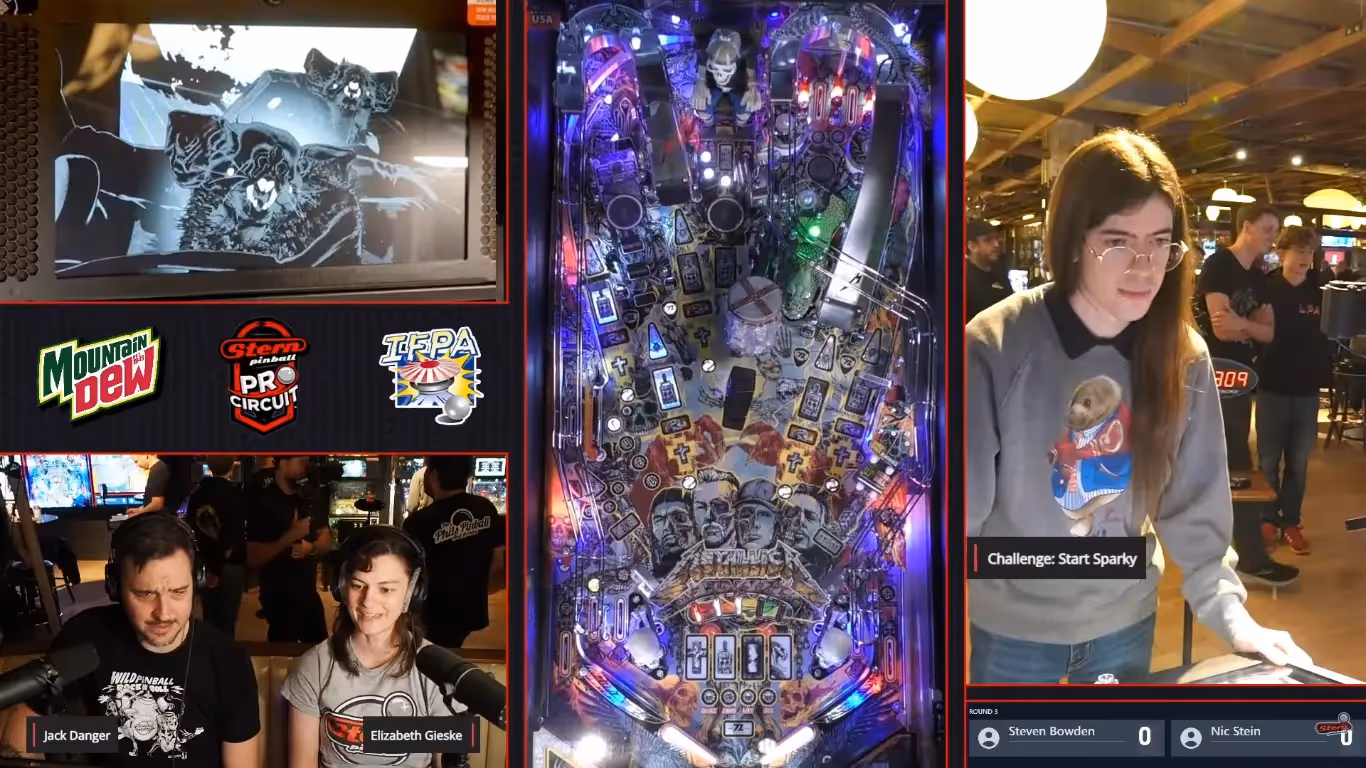 This year's competition was streamed live on Stern Pinball's YouTube channel in association with Backhand Pinball, hosted and commentated by Jack Danger and Elizabeth Gieske, offering 10 hours of world-class tournament pinball to enjoy. The early rounds saw players getting accustomed to the new lightning-fast format, battling for ball control where possible, but still flying through objectives in mere minutes. Andrew Lee held an impressive winning streak for the first three rounds, but was ultimately knocked out by Zach 'Zmac' McCarthy in the quarterfinals, as Nic Stein held his four-round winning streak through the quarterfinals with excellent play. In the semifinals, Raymond Davidson bested Nic Stein in a 6-1 series, while Zach McCarthy continued to heat up by beating Carlos Delaserda in a 6-2 series, setting the stage for the grand finals.