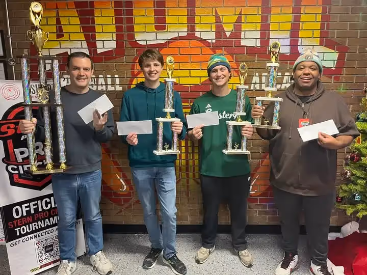 The finals got off to a roaring start on Teenage Mutant Ninja Turtles (Stern), as Eric Stone handily clutched first place by scoring over 200 million points and reaching the wizard mode, while Zmac hung tough for second place. Looking to stifle Eric's fiery play, everyone came in swinging for the next game, Alien Poker. Though Greg and Eric had fantastic first balls, Zmac utilized excellent shatz passing to close the distance on ball 2, then secured the win on ball 3, leaving Eric to pick up second place. Moving into the last game, NBA Fastbreak, only Eric and Zmac had a path to the tournament win, setting the stage for a fierce fight. Ultimately, Eric kept his energy up and scored a whopping 414 total points, icing out Zmac, who floundered with only 12 points. Finishing just as strong as he started, Eric Stone held his own and walked away with the final Stern Pro Circuit tournament victory of 2025, while Zmac, Greg, and Steven finished in second, third, and fourth.