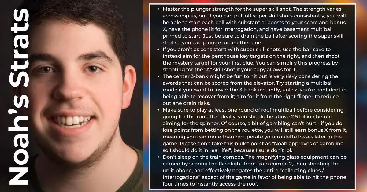 - If you aren’t as consistent with super skill shots, use the ball save to instead aim for the penthouse key targets on the right, and then shoot the mystery target for your first clue. You can simplify this progress by shooting for the “A” skill shot if your copy allows for it.